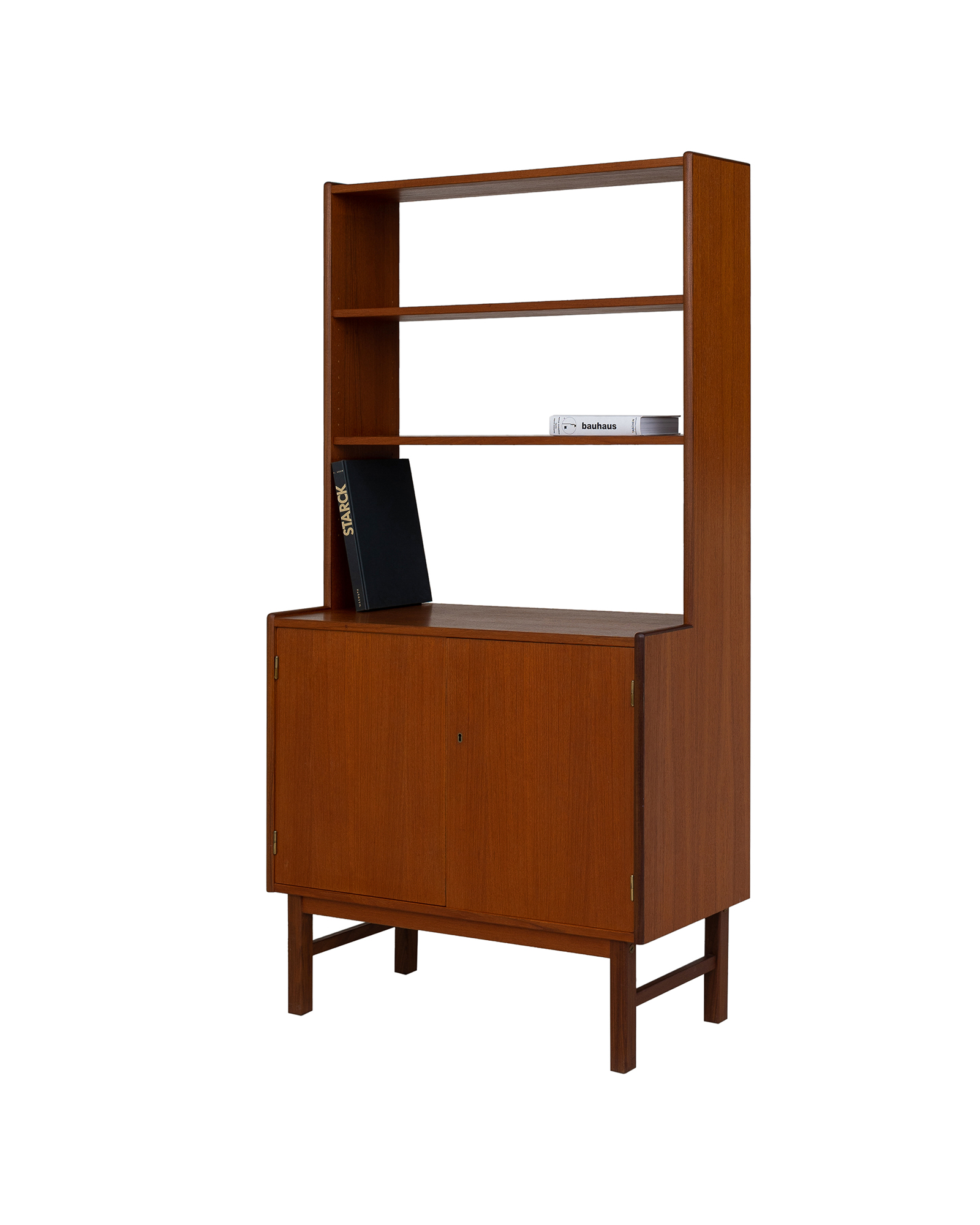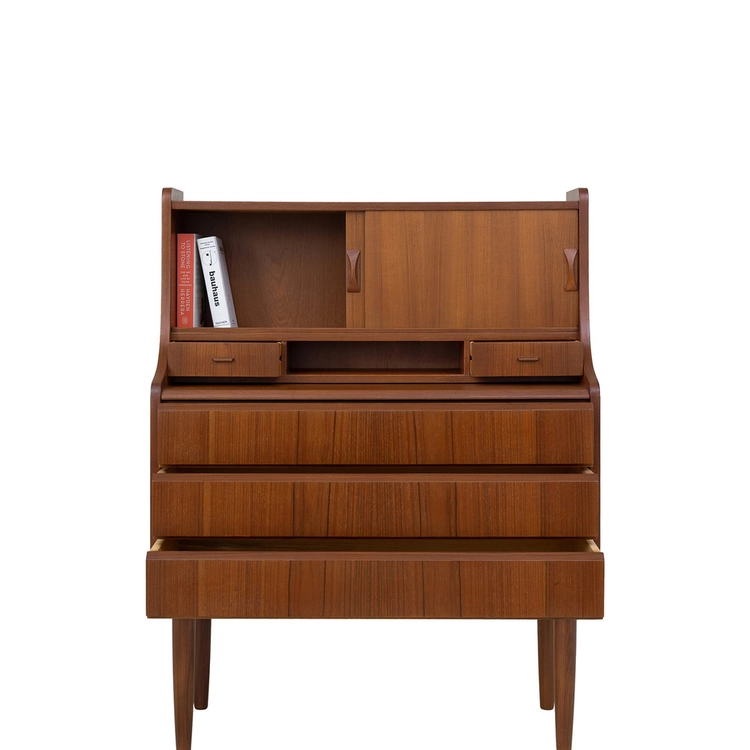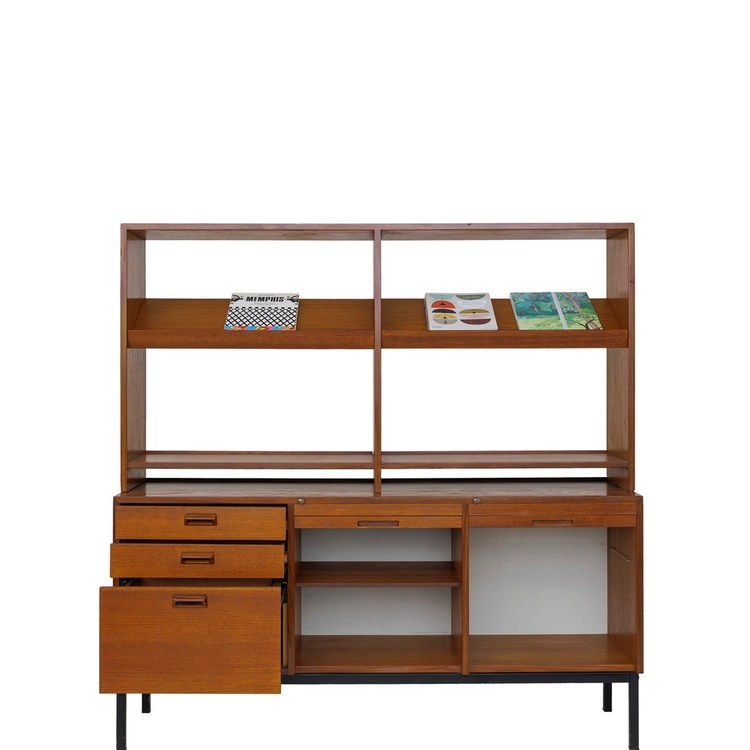 "좁은 주방이나 거실 한 켠, 부담스럽지 않은 깊이감으로 다정하게 자리 잡았던 북쉘프입니다. 상단 선반은 막혀있지 않아 유선 조명을 자유롭게 설치할 수 있었고, 하단 수납공간에는 서랍이 있어 아끼는 커틀러리를 소중히 담아두었습니다. 인테리어 전환을 하면서 아쉽지만 떠나보내게 되었습니다." - 빈티지 가구 컬렉터 유00님