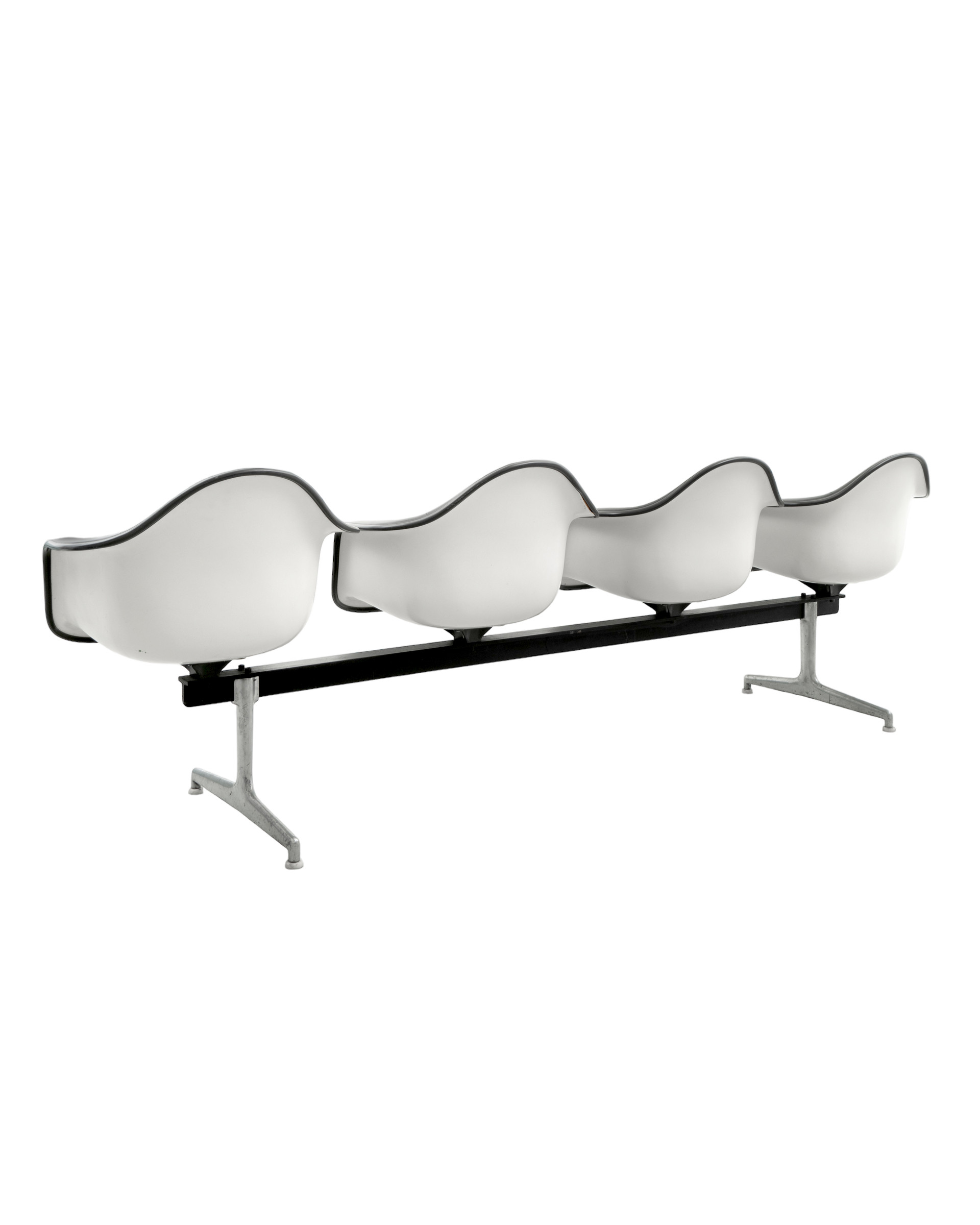 (Vintage) 대구에서 오랜 시간 빈티지 가구를 컬렉팅 해온 임00 님이 위탁하신 찰스 & 레이 임스의 탠덤 벤치입니다. 네 개의 섬유 유리(파이버글라스) 셸 위에 노가하이드(naugahyde)를 입혀 좀 더 편안한 착석감을 높였으며, 대기 공간이나 로비 등 모든 종류의 상업 공간에 사용하기에 적합합니다.