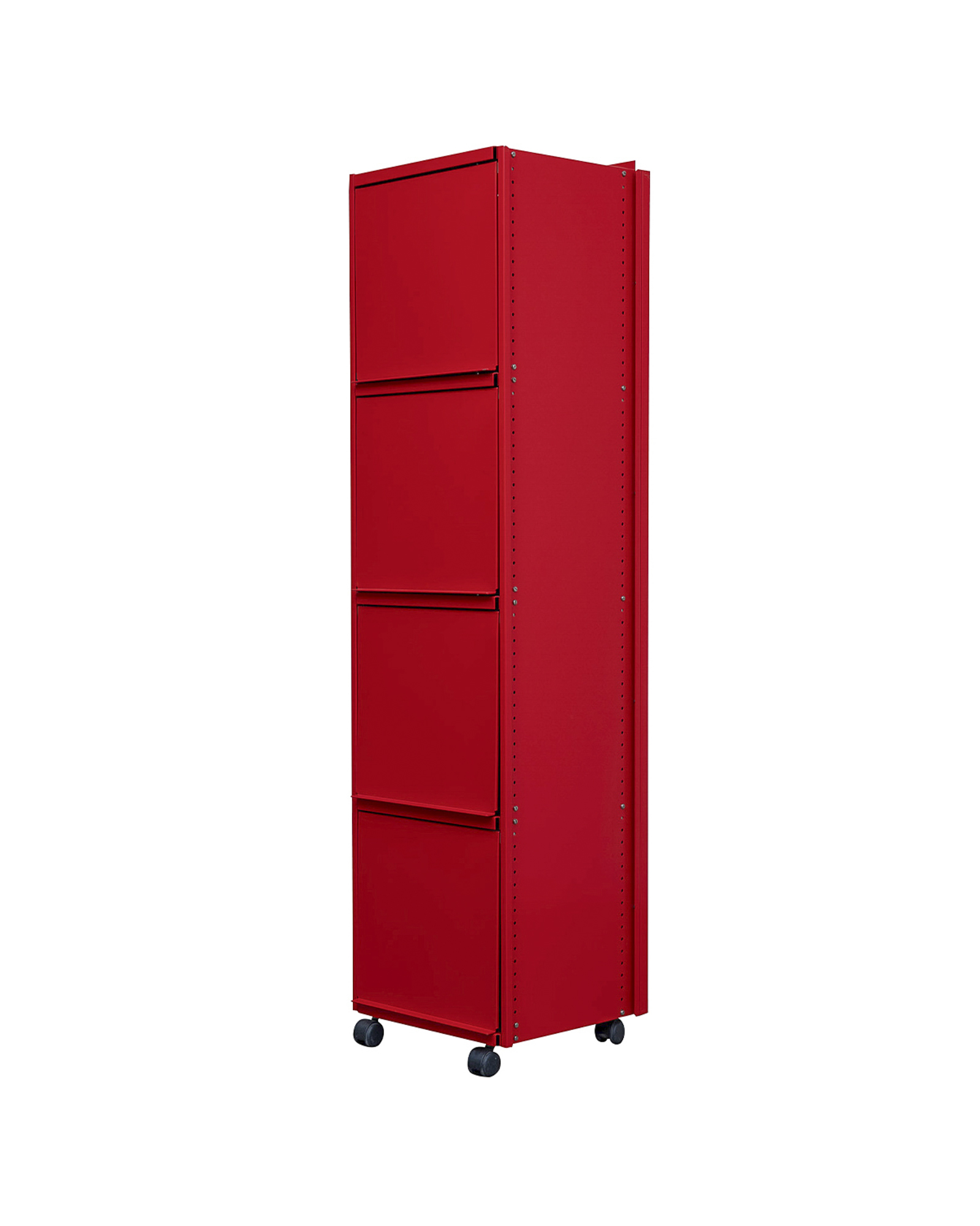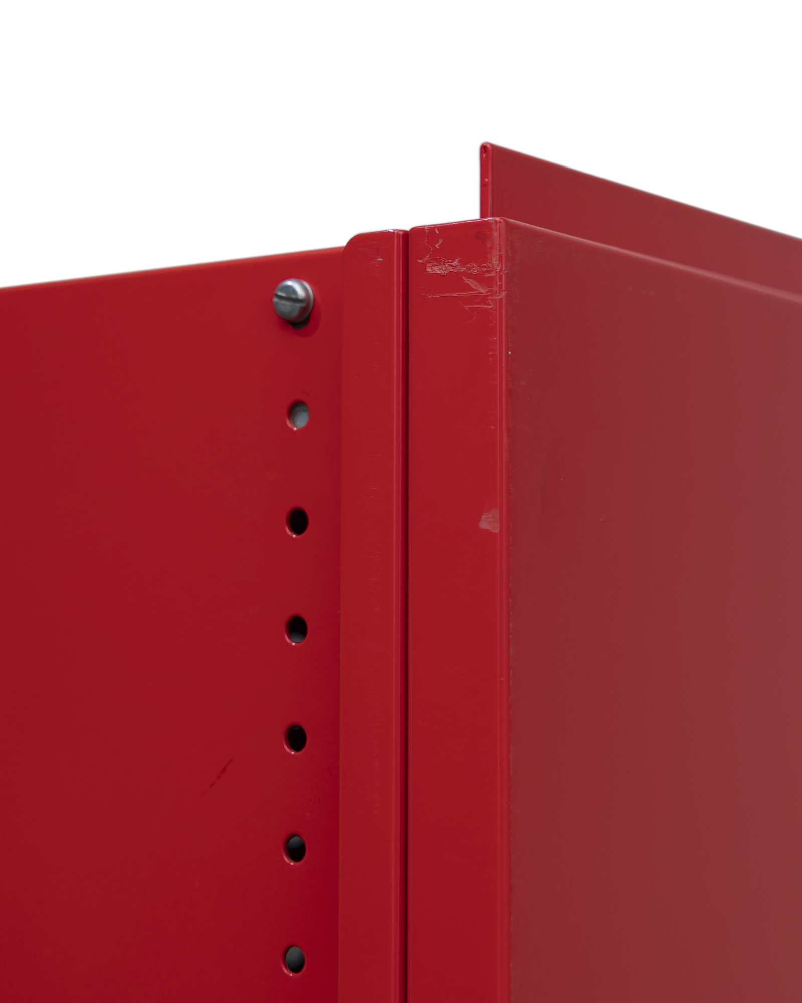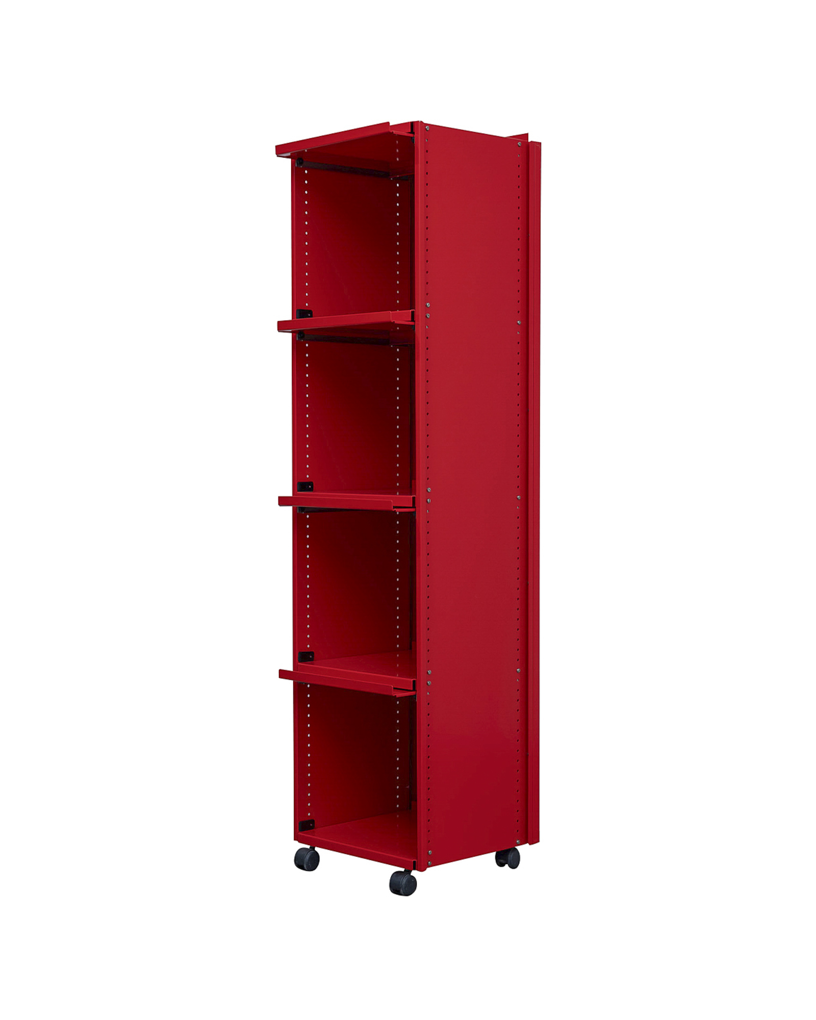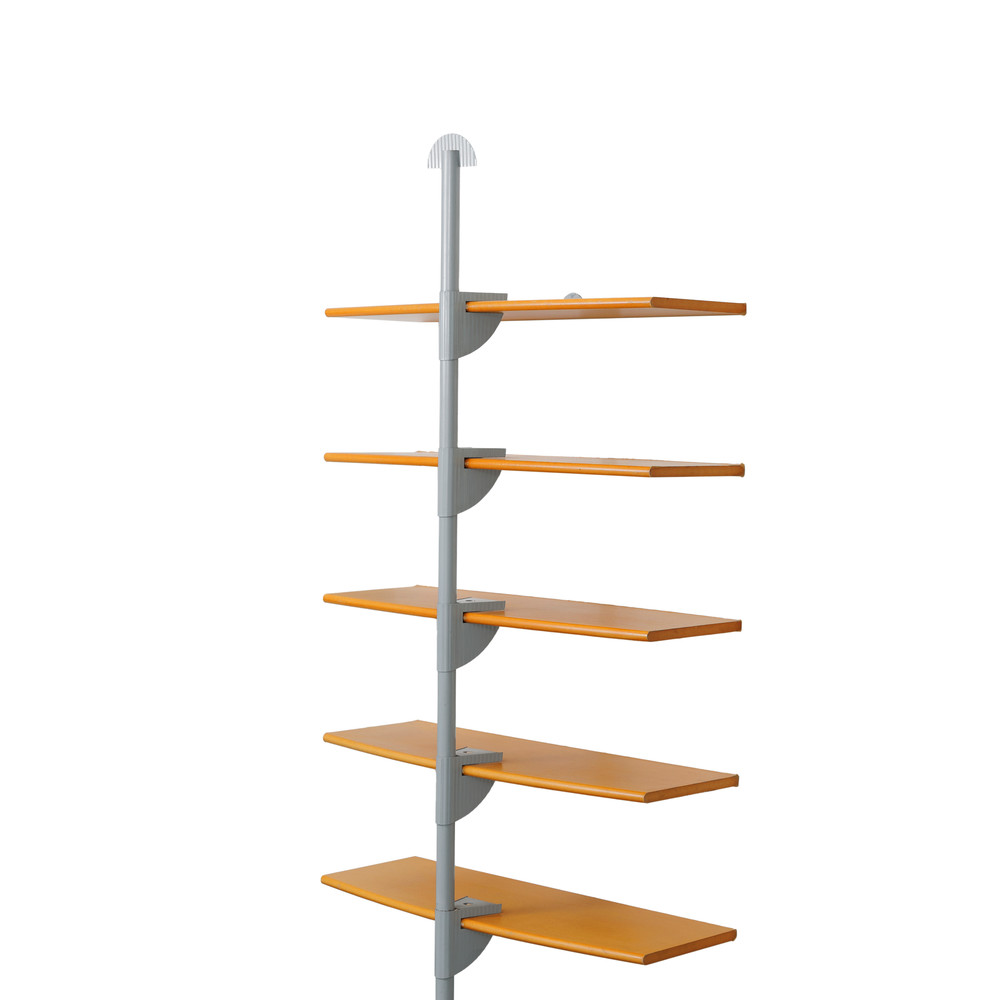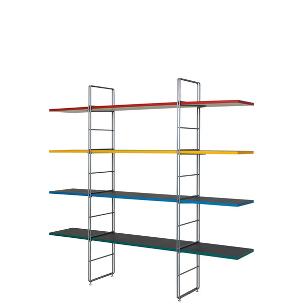 "1964년 스위스 엑스포(Expo 64) 국가 전시회의 아트 디렉터였던 막스 빌(Max Bill)은 1963년 안드레아스 크리스텐(Andreas Christen)에게 책장 디자인을 요청했습니다. 이에 안드레아스 크리스텐은 스위스 제조사 레니(Lehni)와 함께 오늘날까지 전설적인 클래식 전금속 책장을 구상했습니다. 당시 금속 가구를 가정용으로 제작한다는 발상은 매우 혁신적이었습니다. 이 책장은 알루미늄 시트로 제작되었는데, 접고 구부리는 과정을 통해 형태와 안정성을 유지할 수 있도록 설계되었습니다. 지지대와 선반 모두에 1.5mm 두께의 알루미늄 시트가 사용되었으며, 뒷면에는 니켈 도금된 철제 십자형 구조물이 보강 역할을 했습니다.