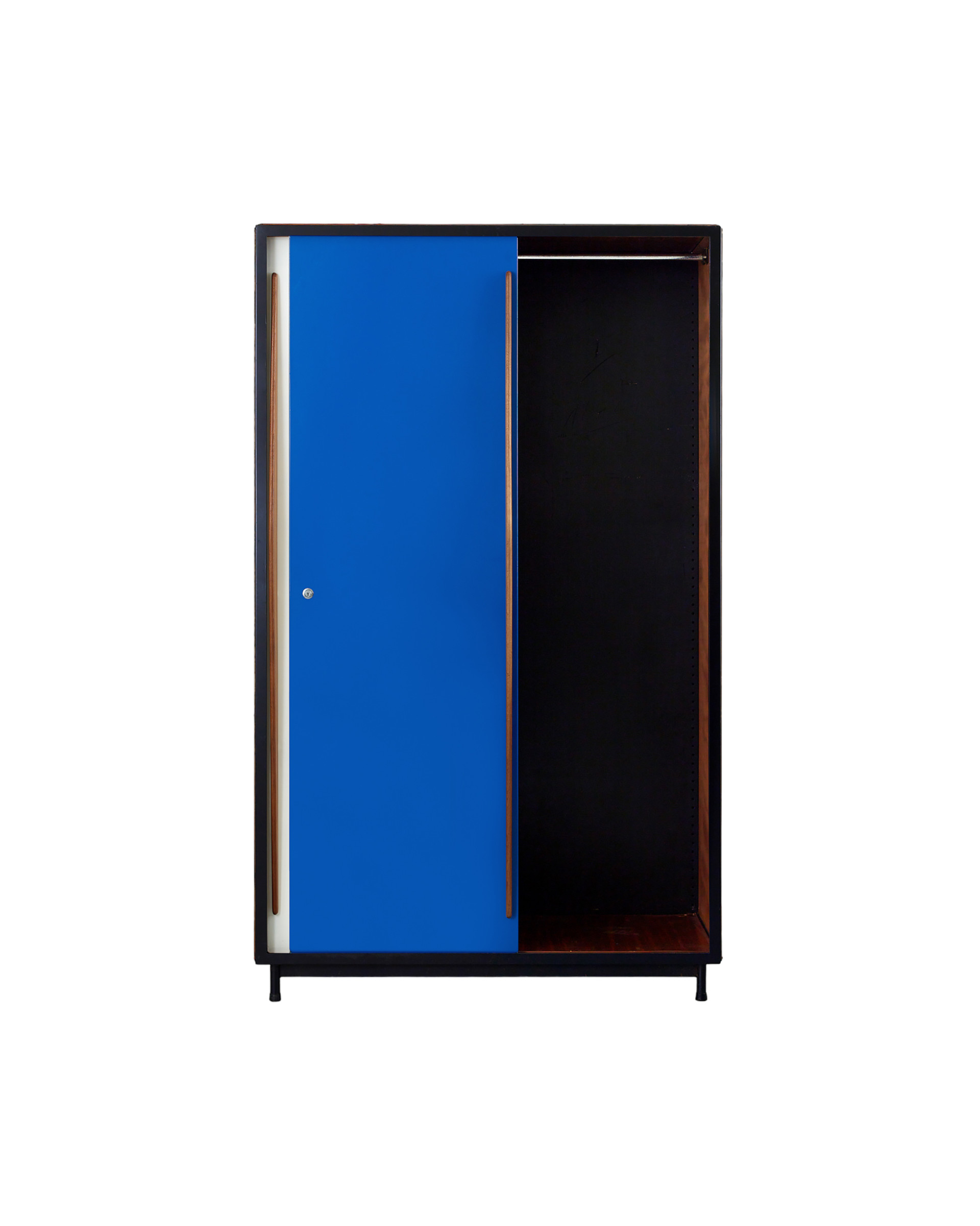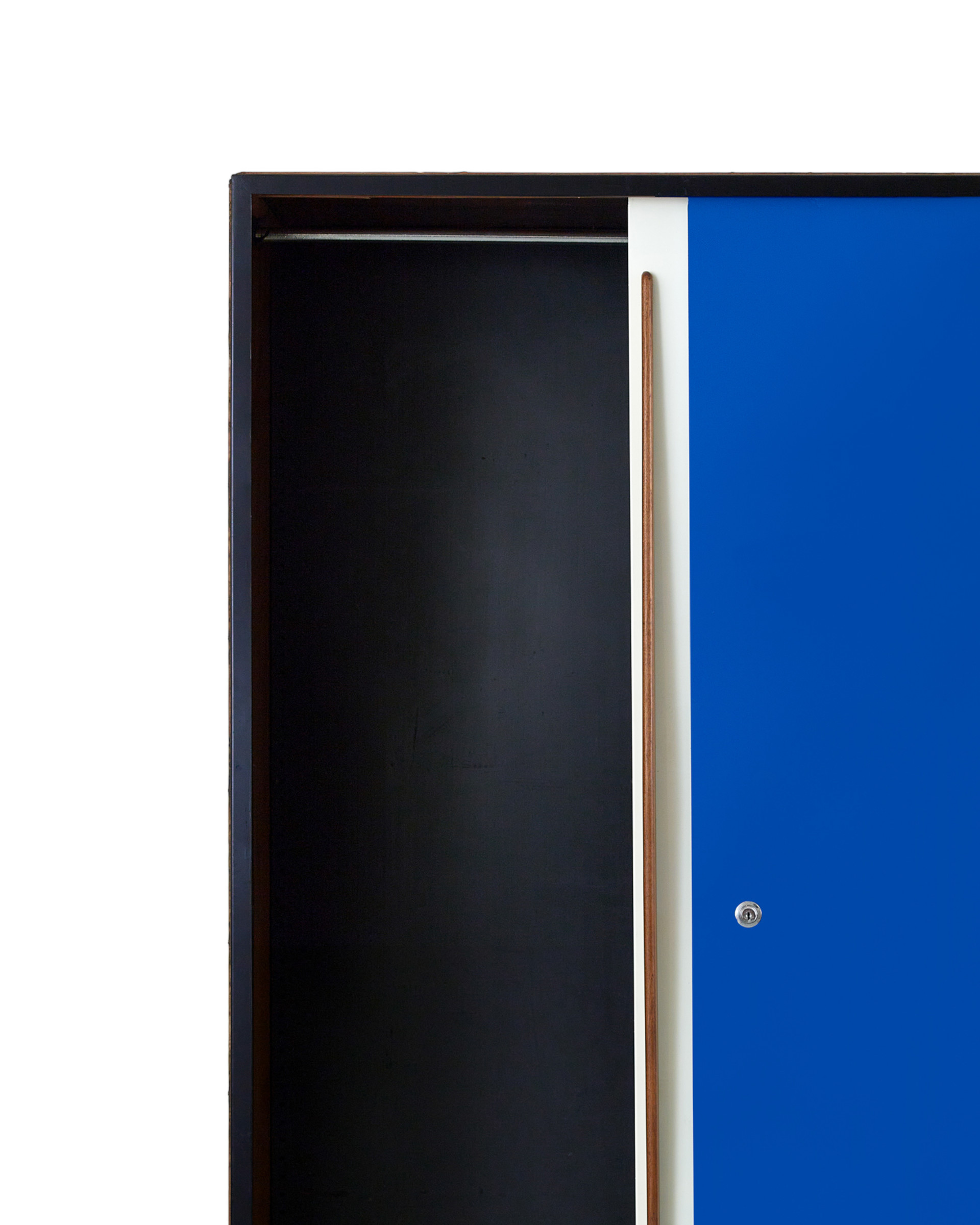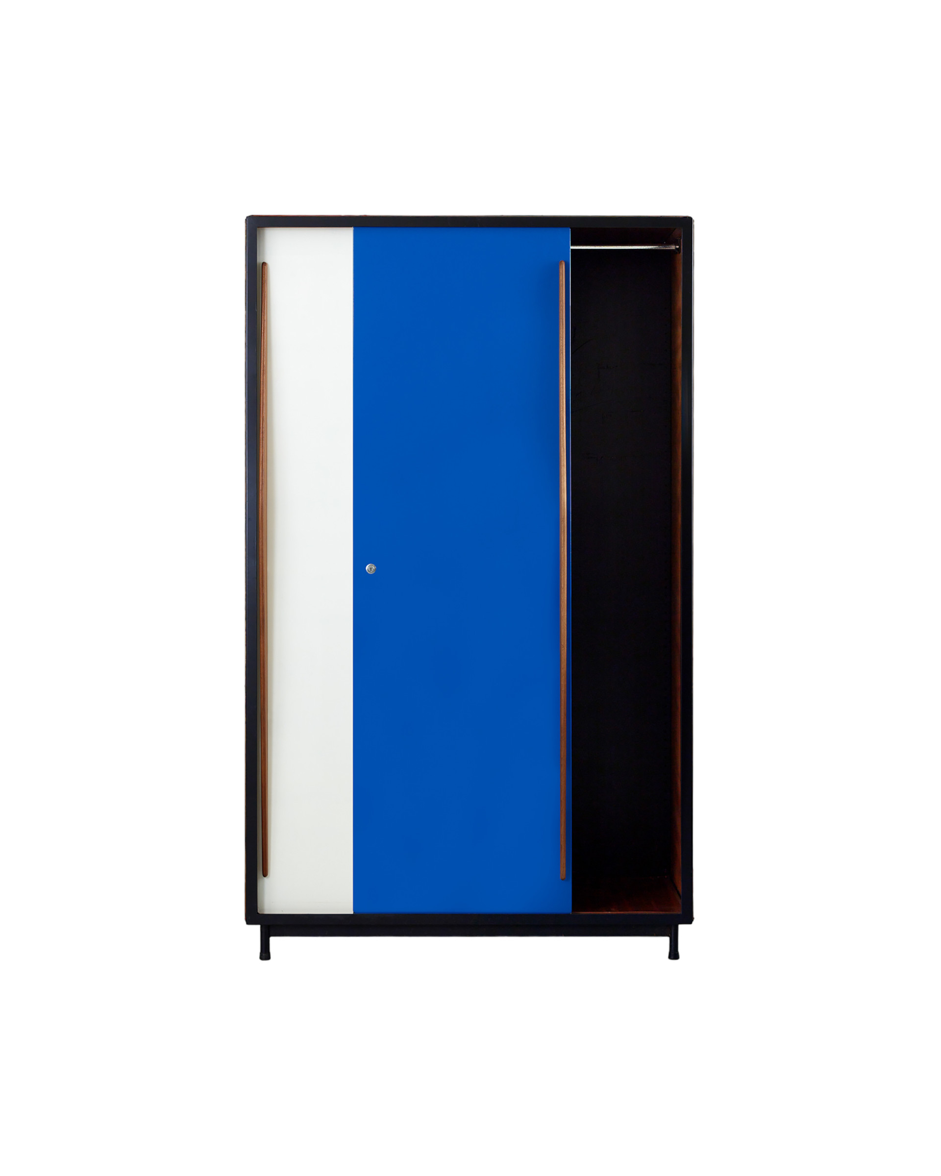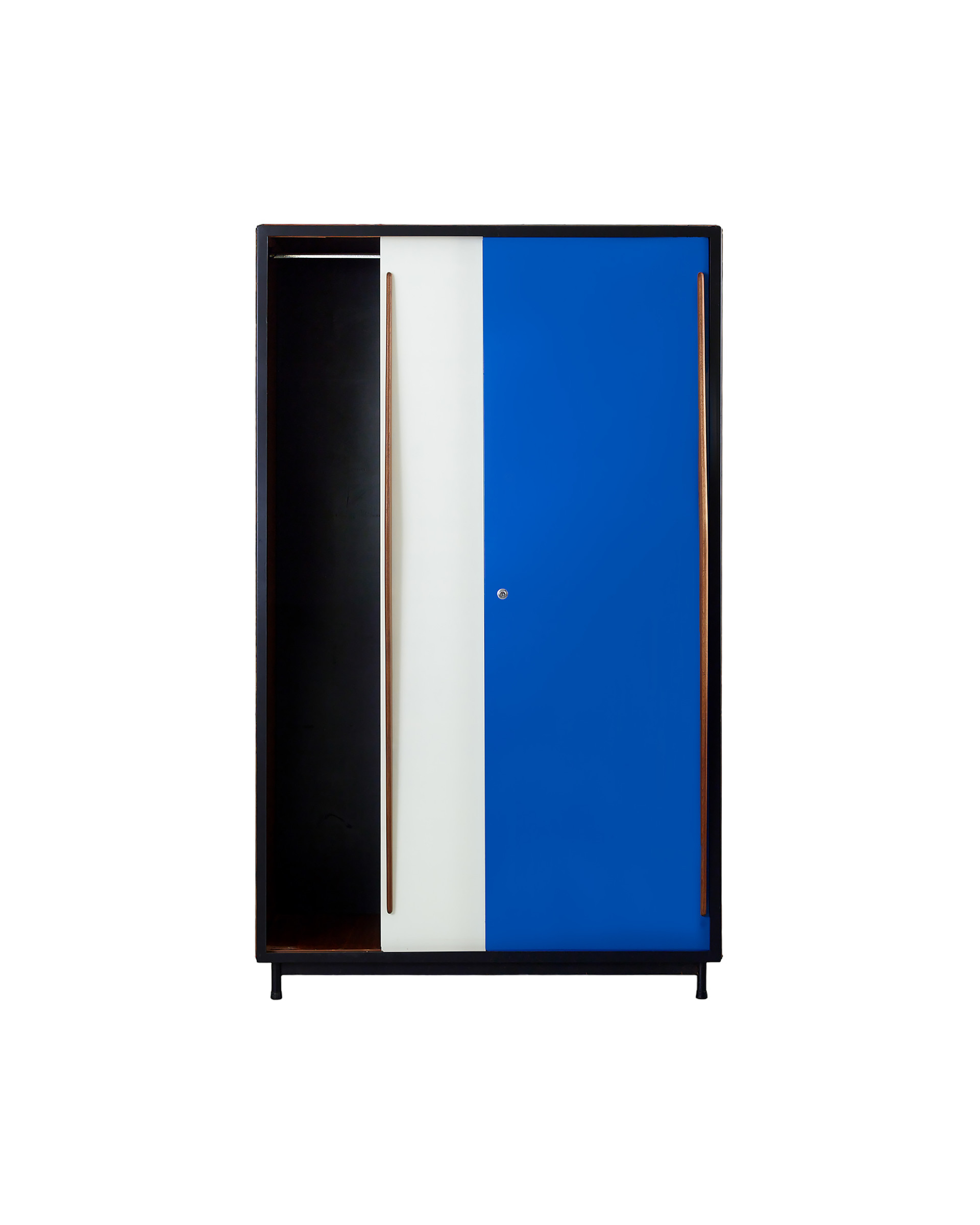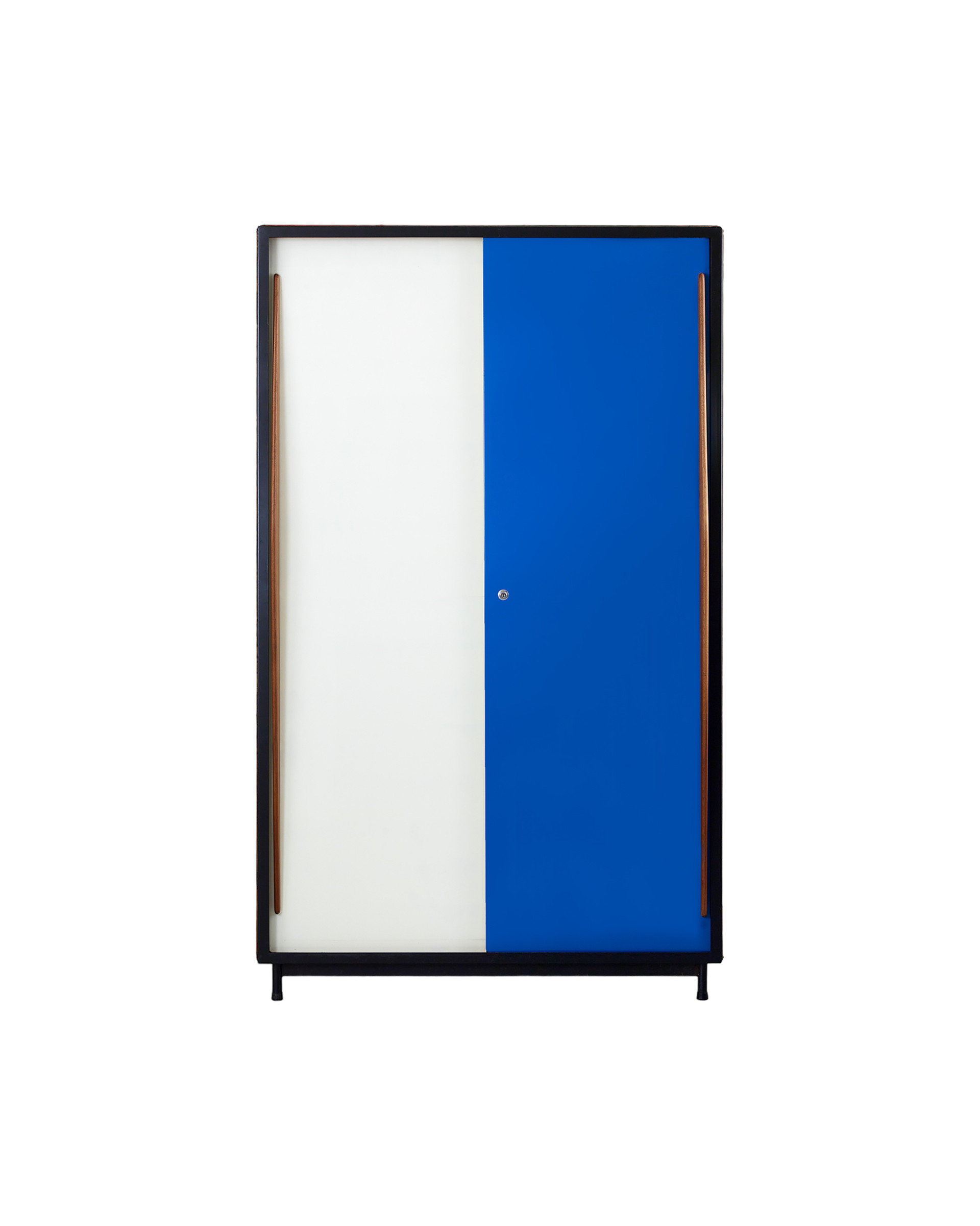 (Vintage) 패션 스타일리스트 최00 님이 위탁하신 벨기에 건축가이자 가구 디자이너 빌리 판더르 메이런의 워드로브입니다. 금속 프레임에 마호가니 합판이 균형감 있게 구성되어 있는 워드로브는 전면 수납 도어를 블루와 화이트 컬러로 배색함으로써 절제된 장식성을 보입니다. 내부는 행잉 레일이 설치되어 있어 긴 기장의 아우터, 드레스, 오버올 등 의류를 구김 없이 보관할 수 있습니다. 너비와 깊이가 충분해 의류 외에도 부피가 큰 짐을 보관하기에 용이하며, 제품 진열에도 효과적입니다.