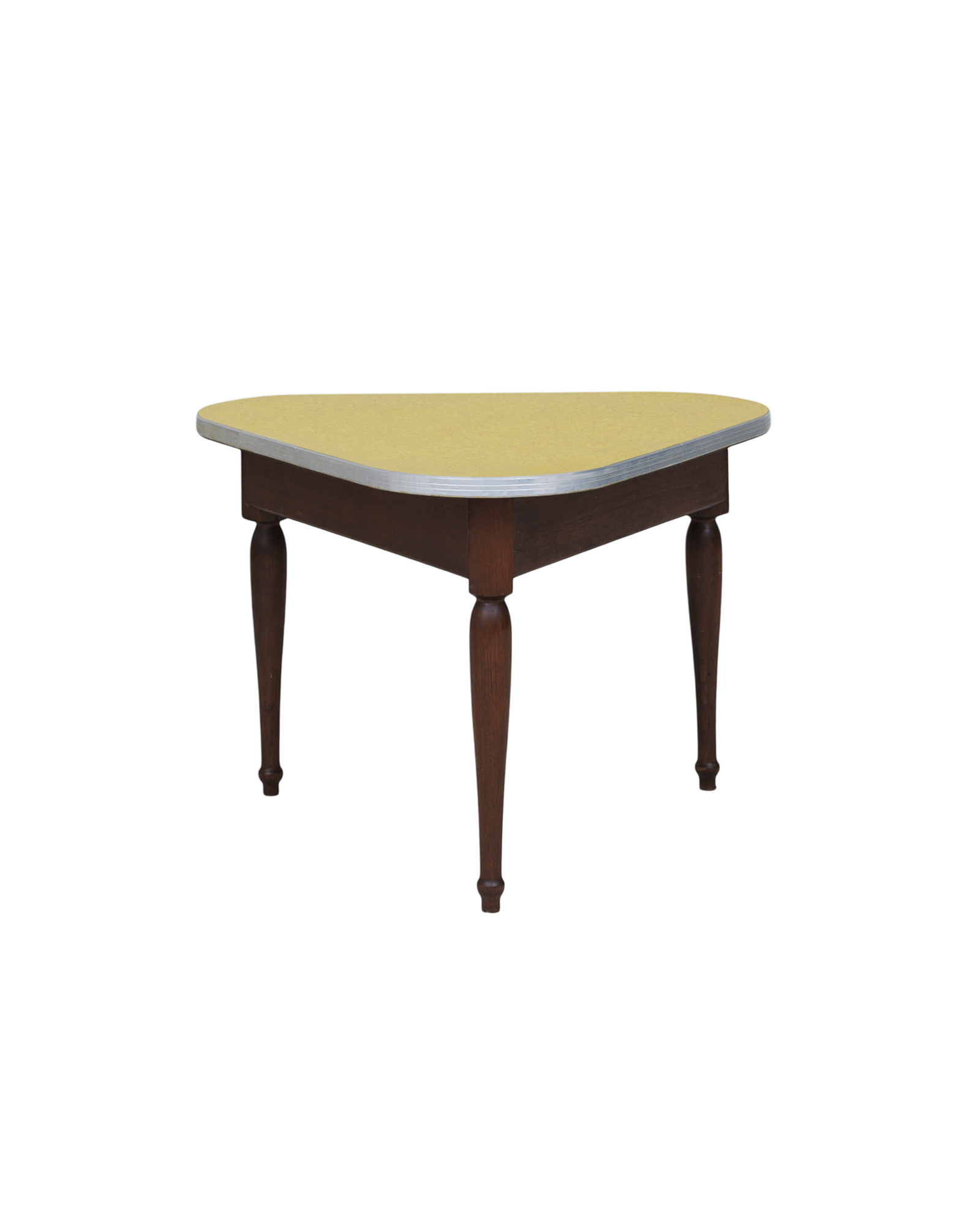 "60년대 미국 미드 센추리 가구이지만 동양적인 무드도 섞여있는 느낌이 독특한 협탁입니다. 삼각형으로 어디에 둬도 잘 어우러지는 실용적인 크기입니다. 3개의 재질이 조화롭게 섞여있는 느낌이 굉장히 유니크합니다." - 빈티지 가구 컬렉터 이00 님
